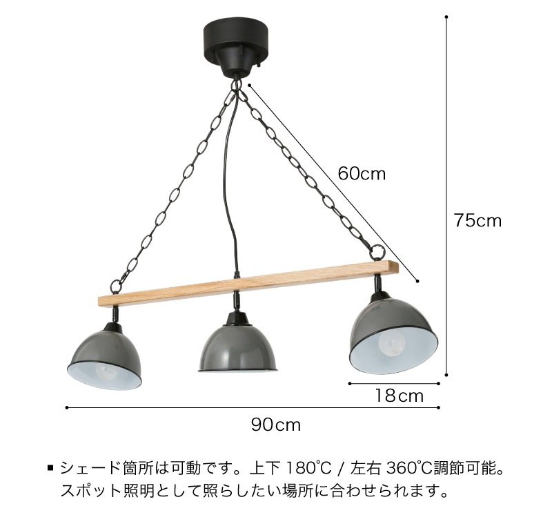 本体:幅90×奥行18×高さ75 cm シェード:φ18cm チェーン長:60cm(長さ調節可能) 重量:3kg |