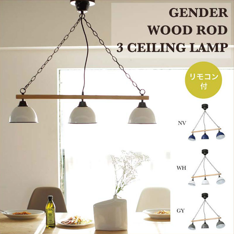 ジェンダー ウッドロッド 3灯 シーリングランプ (リモコン付)
