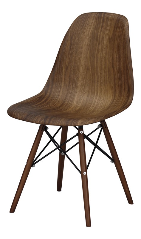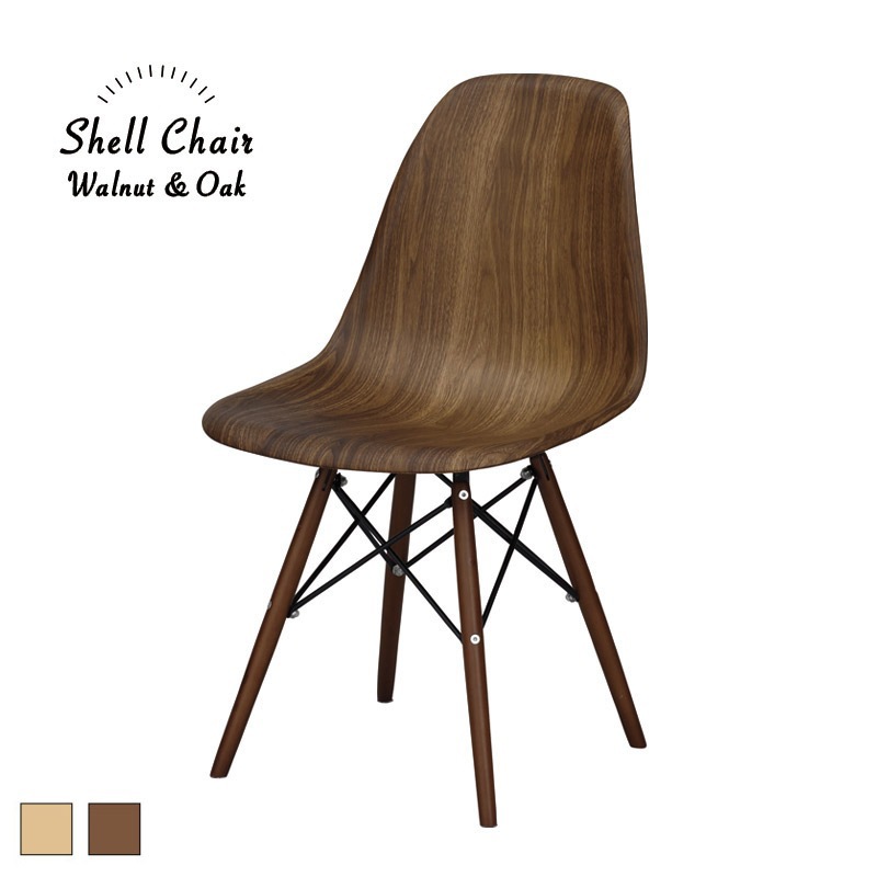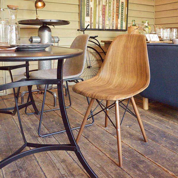 木目調のABS樹脂とブラック塗装のスチールパイプで構成された脚フレームと、ゆったりと包み込む背座を組み合わたシェルチェア。