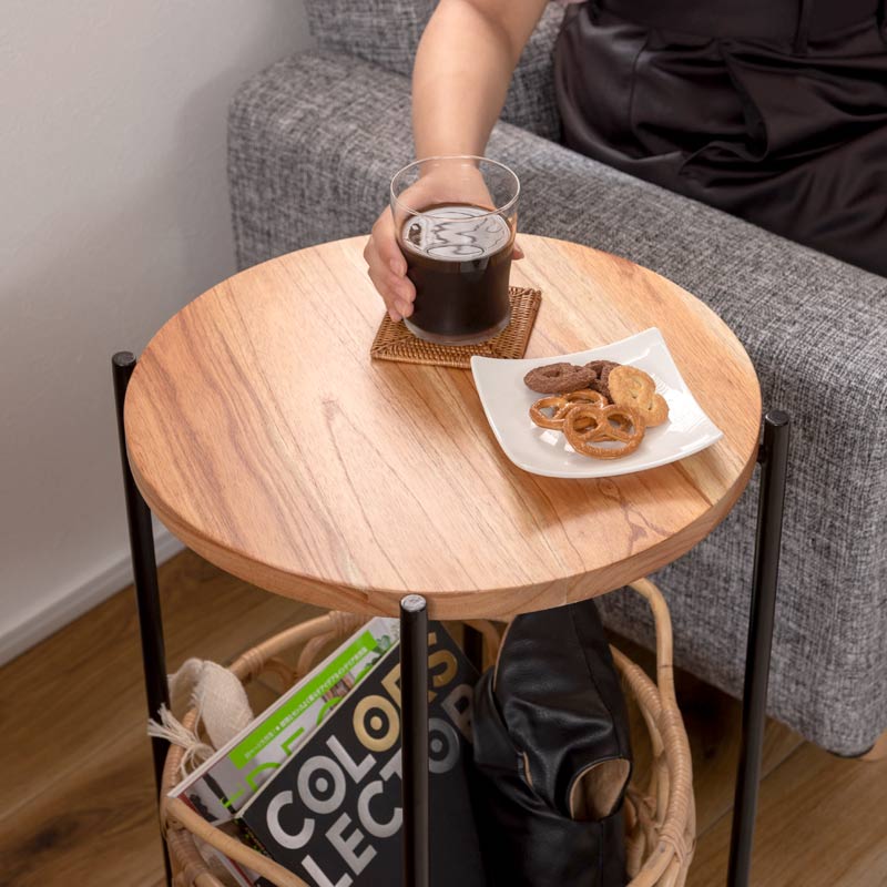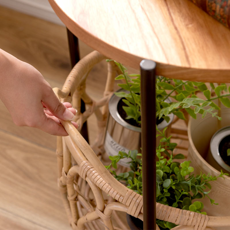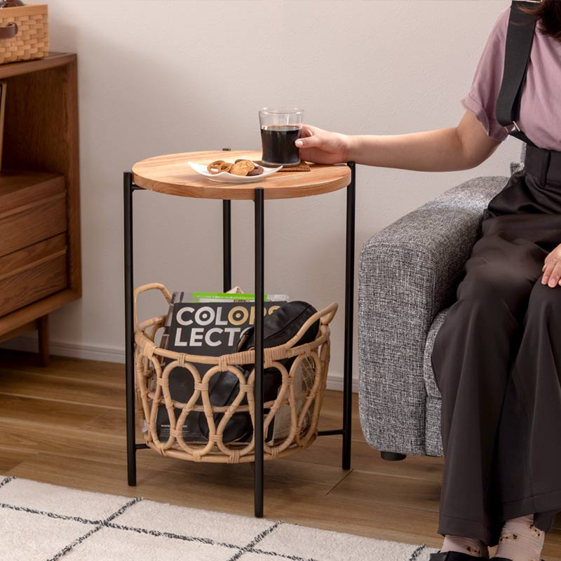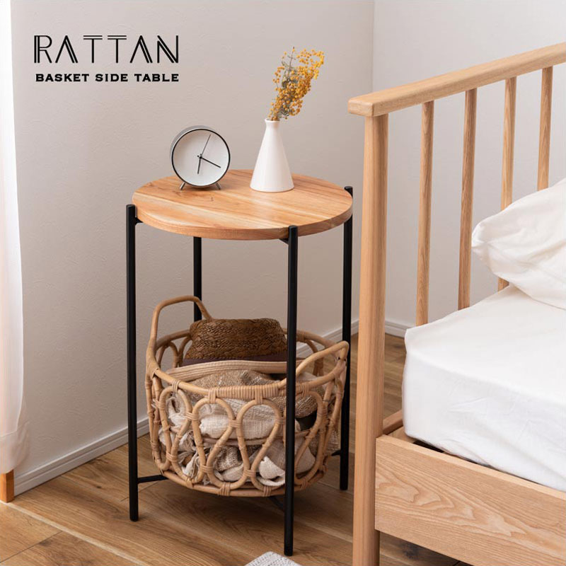 ラタン バスケット付きサイドテーブル