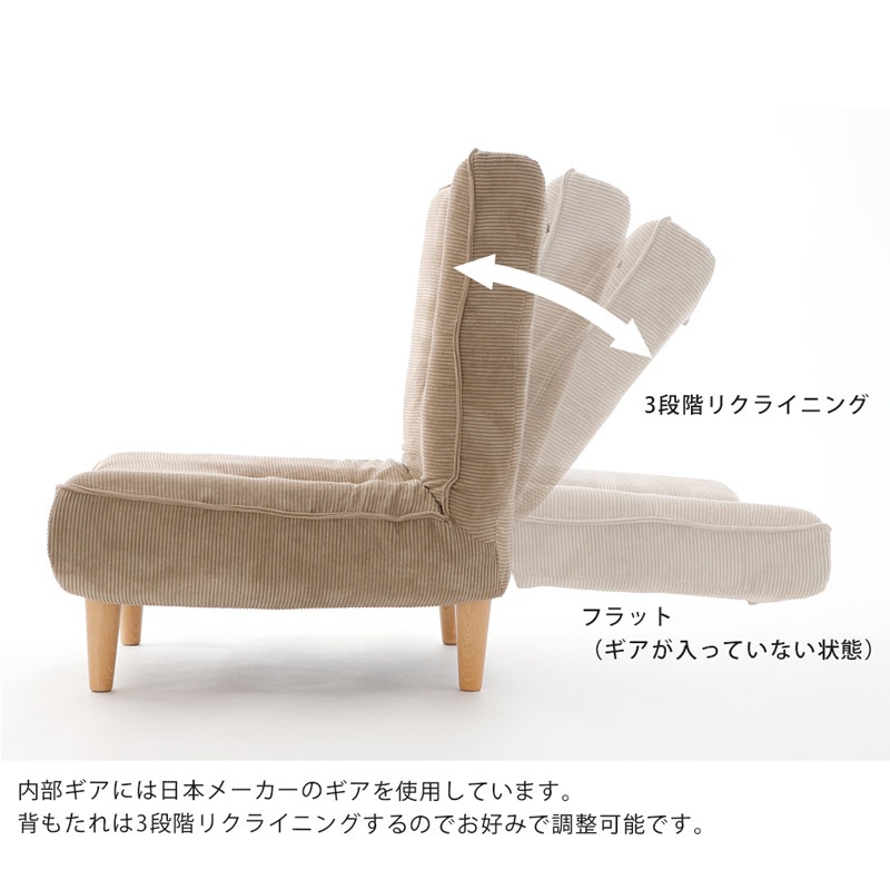 3段階リクライニング機能付きの背とポケットコイル入りの座面は座り心地が抜群です。