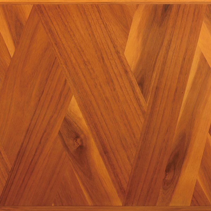 天然木を巧みに繋ぎ合わせた伝統的な「ヘリンボーン柄」は、横から見ても上から見ても独特の存在感を発揮。