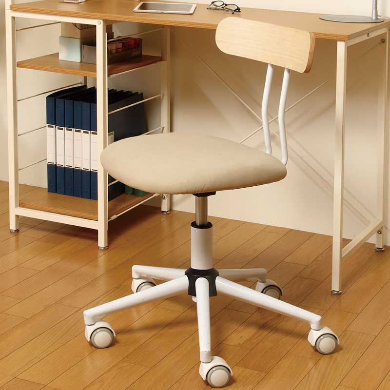 座面:布張地(ポリエステル100%)、ウレタン 脚:スチール 粉体塗装 背:合板(オーク突板) キャスター:PU(ポリウレタンキャスター) |