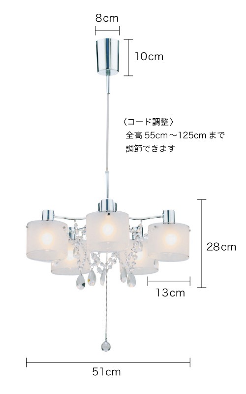 プルスイッチ(紐)で 全灯、3灯、2灯、消灯の切り替えができます。 コードの長さは55cm~125cmの間で調節可能です。 合計240Wで6畳程度のお部屋に適しています。 配送サイズ A サイズ 配送料金表はこちら |