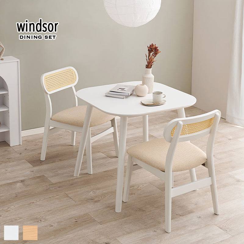 ダイニングテーブルとチェアが2脚のセットになっています。