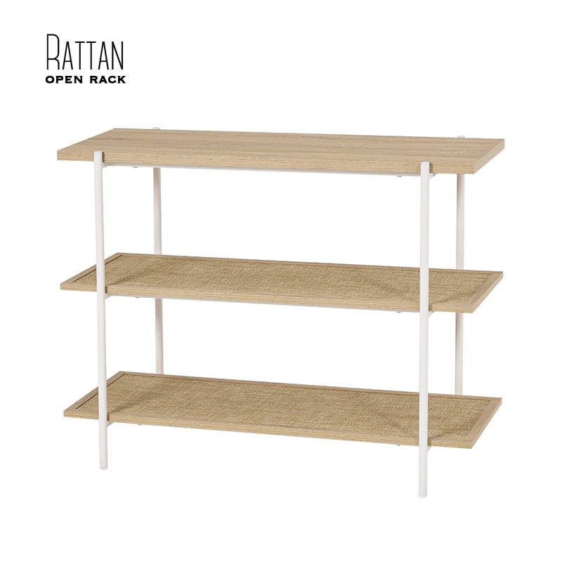 ラタン調の棚板がアクセントになるナチュラルなオープンラックです。