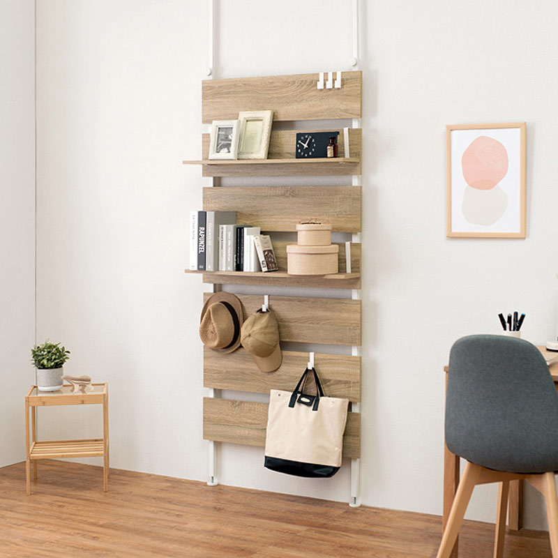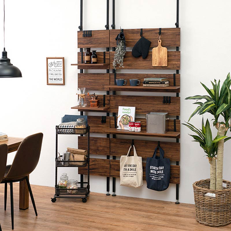 ちょっとしたスペースに壁面収納を簡単に取り付けられる、突っ張り式のウォールラックです。