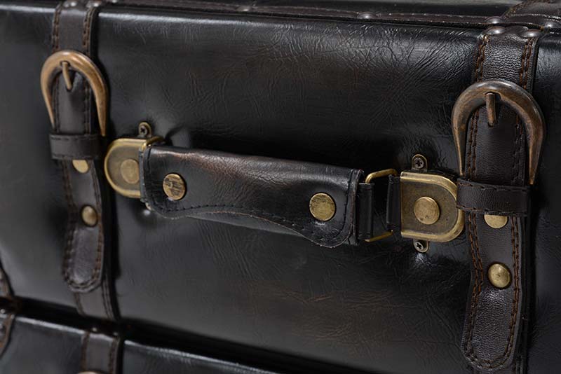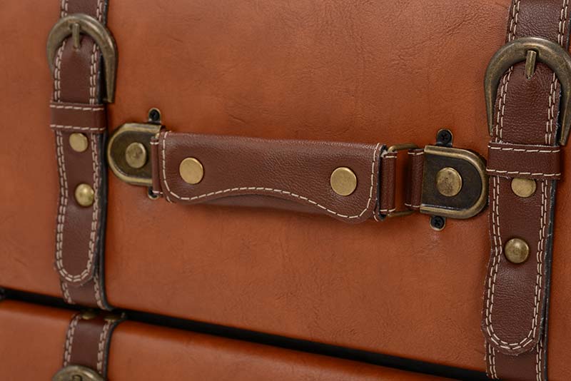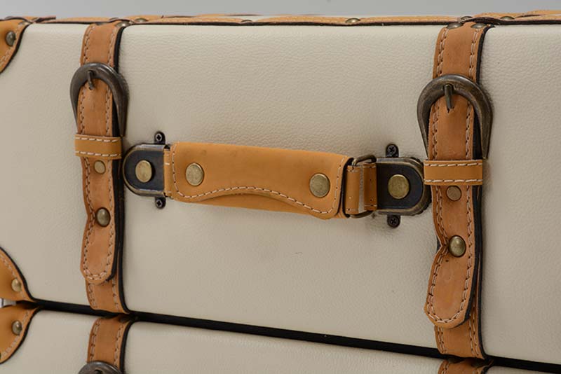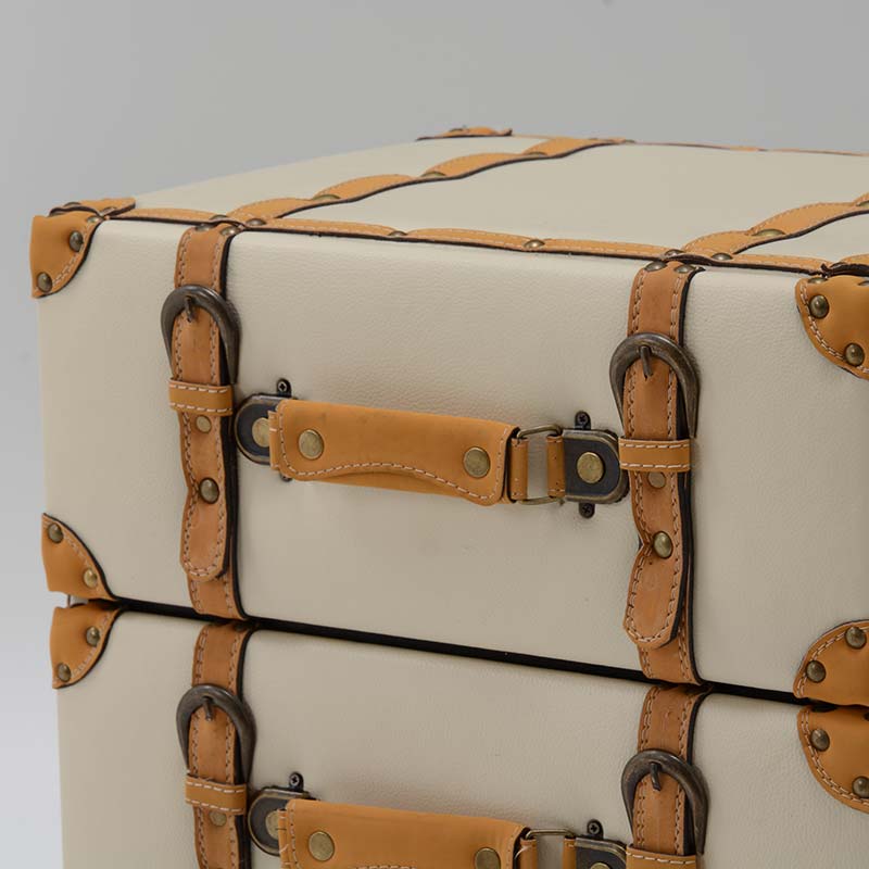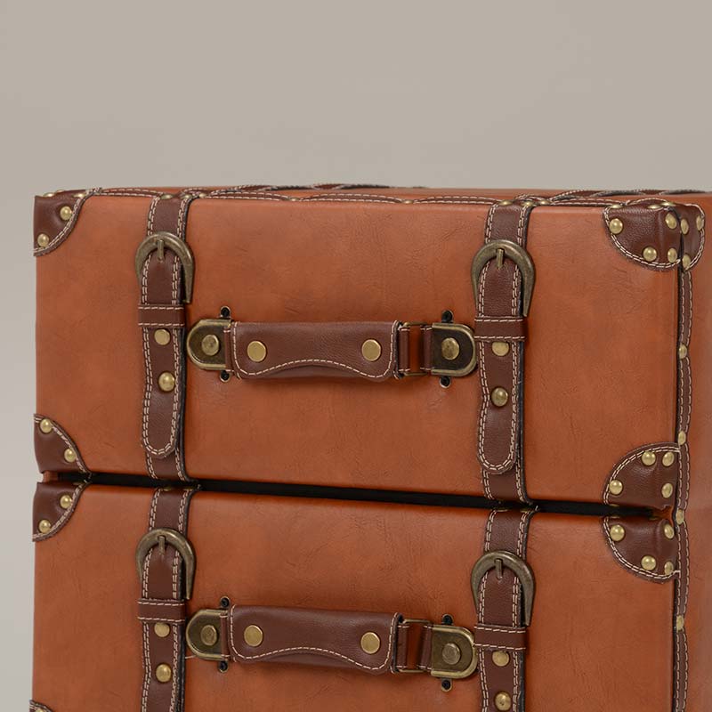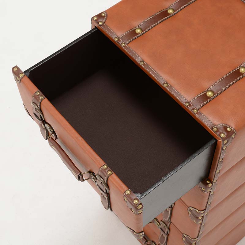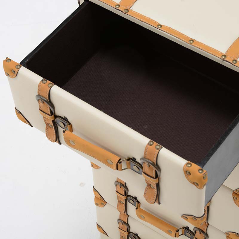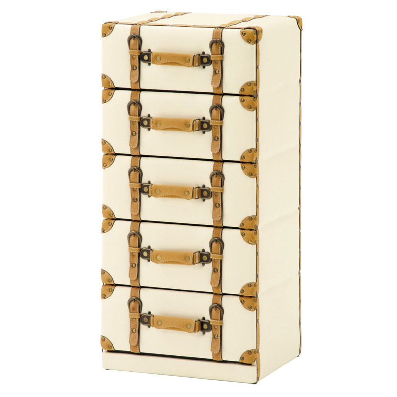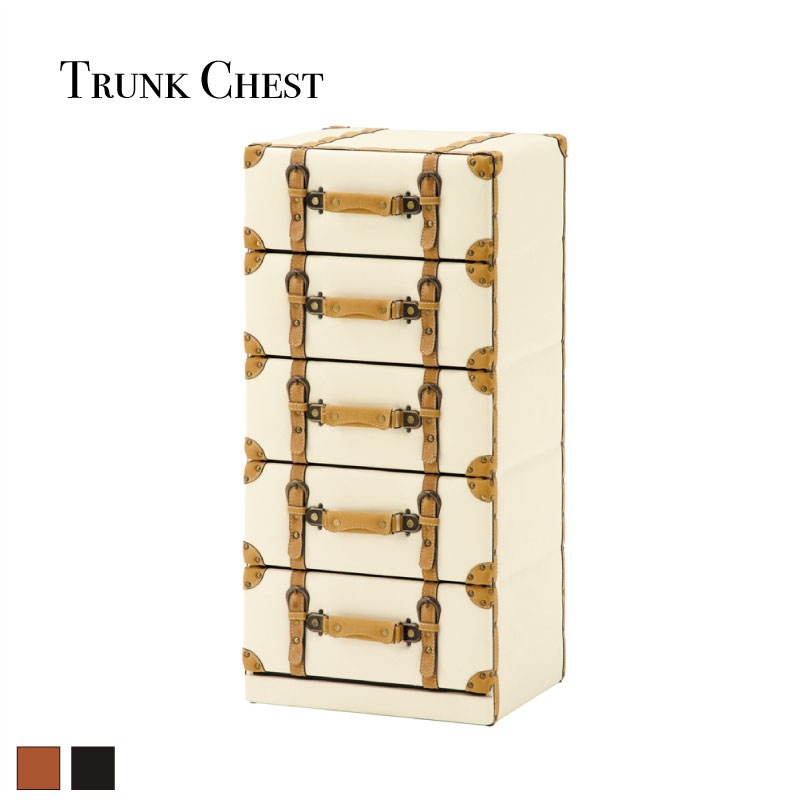 トランクをモチーフとしたアンティークなデザインが魅力のチェスト。