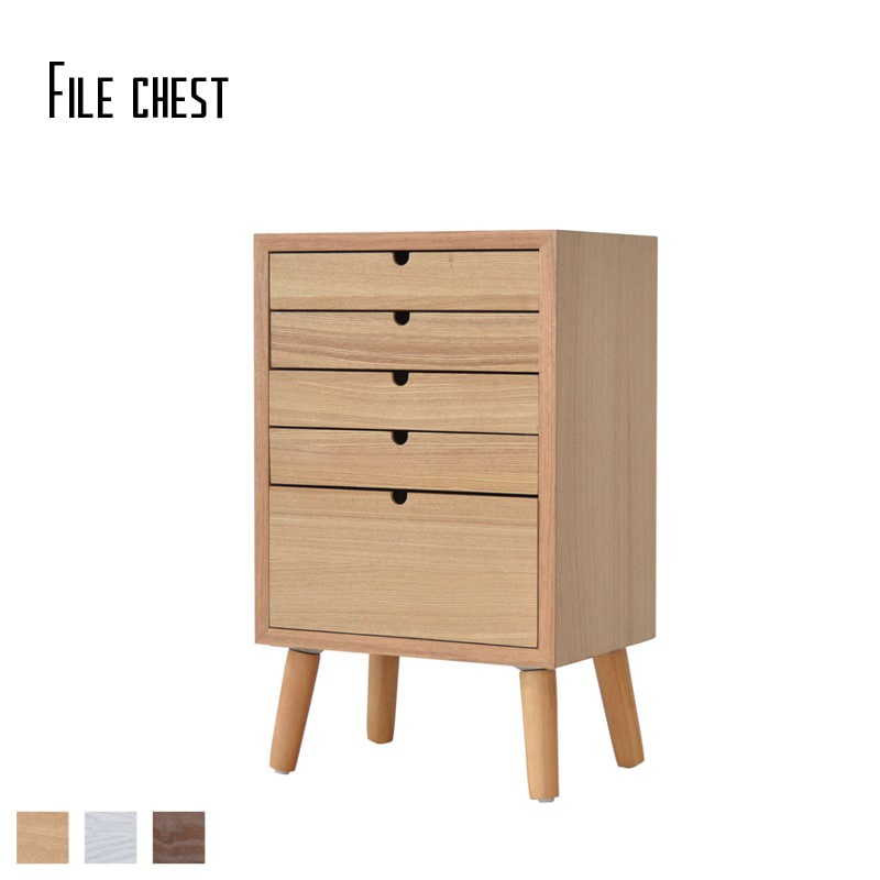 木目が美しいタモの突板を使用し、天然木本来の木材の濃淡を活かした自然な風合いの北欧家具調の5段収納チェストです。