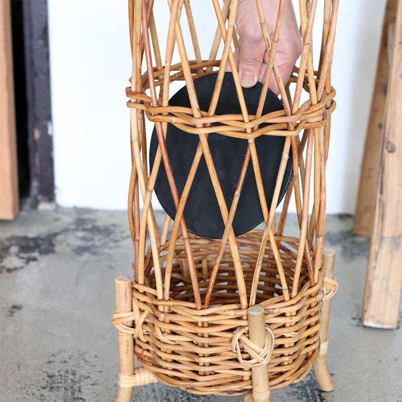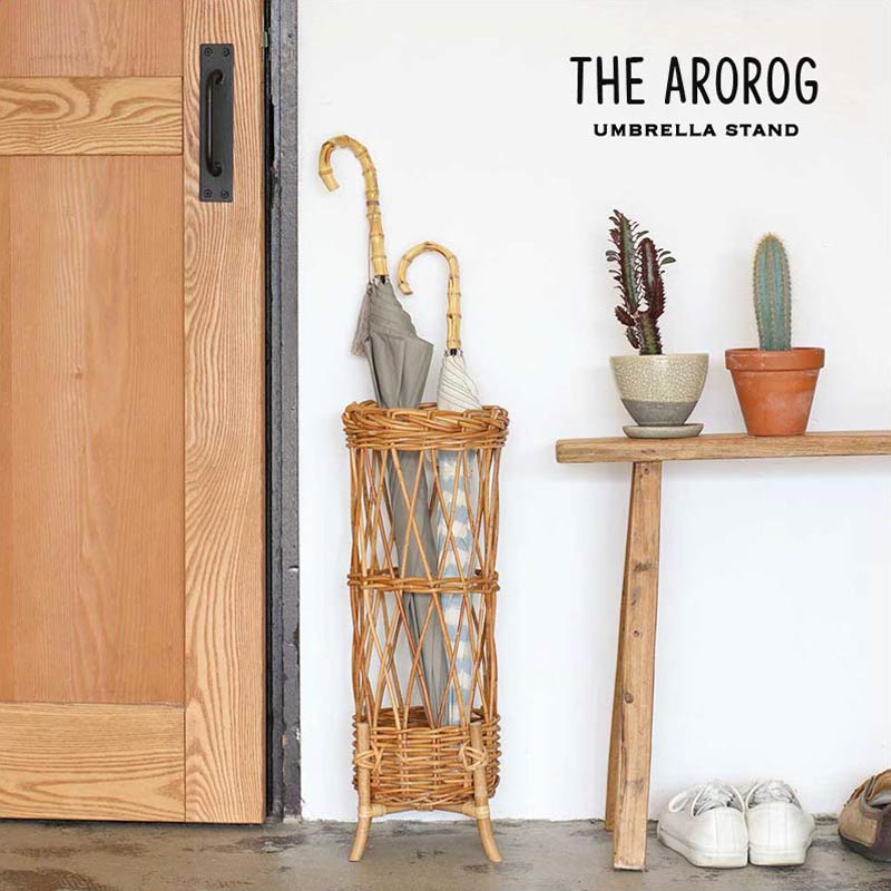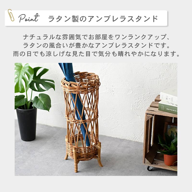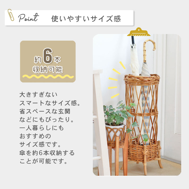 雨の日も晴れやかになる、ラタンの風合い豊かなアンブレラスタンド。