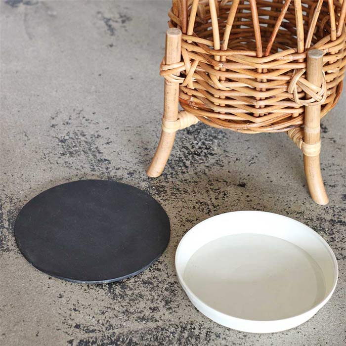 皮付きラタン、アイアン、プラスチック ◎底に重石と受け皿が付きます |