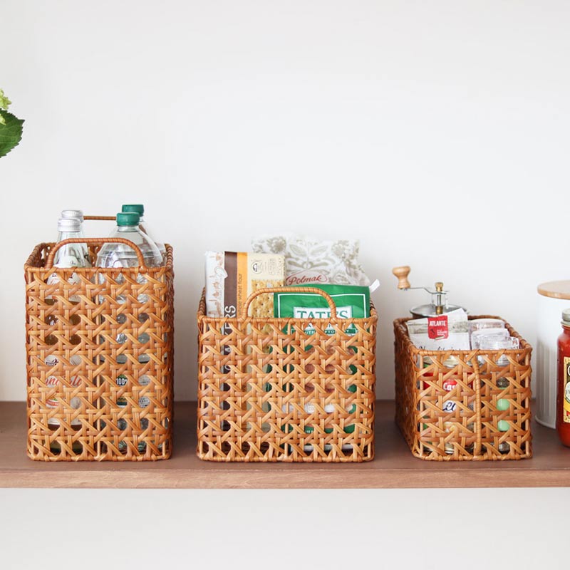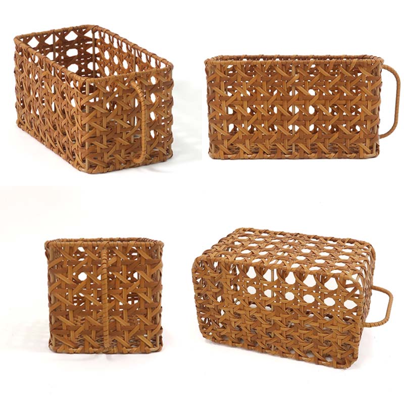 PPラタンで編まれた取っ手付きストッカーバスケットです。