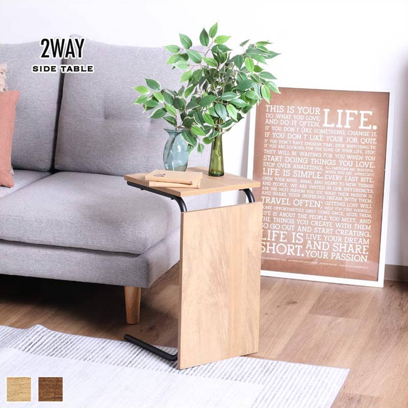 ソファのサイドテーブルとして使いやすい高さで、飲み物やスマホなどを気軽に置けて便利です。