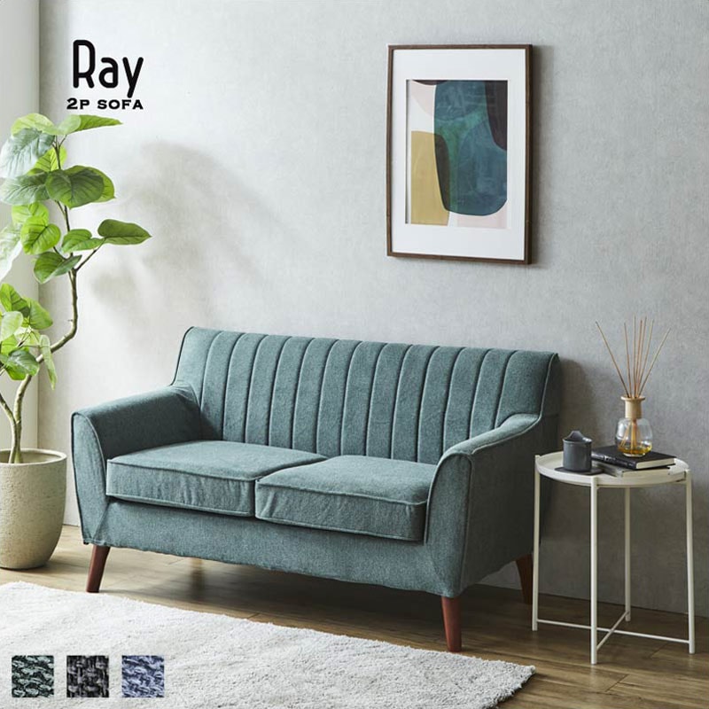 ストライプのステッチがシャープな印象の2人掛けファブリックソファです。