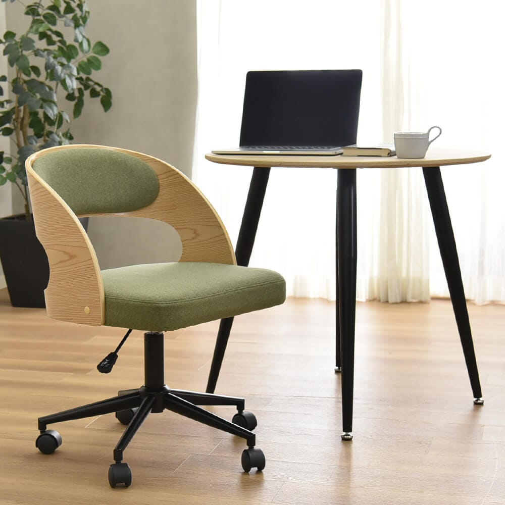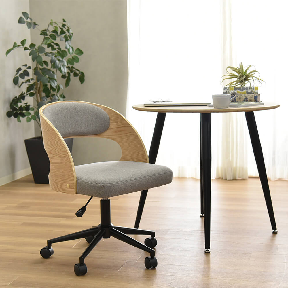 北欧風曲木デスクチェアは、スタイリッシュで快適な座り心地を提供します。