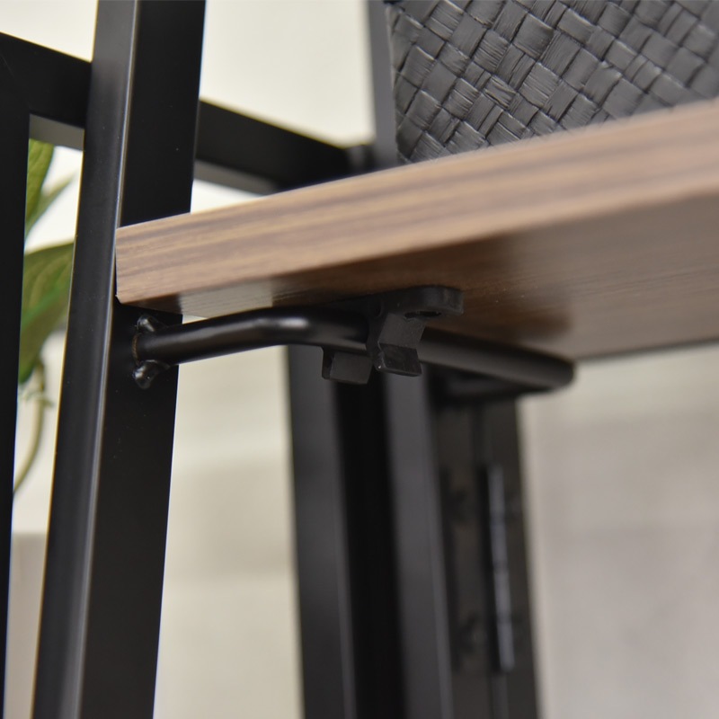 スチール×ウッドのスタイリッシュデザインで、美しい木目とスチールの組み合わせが特徴的です。