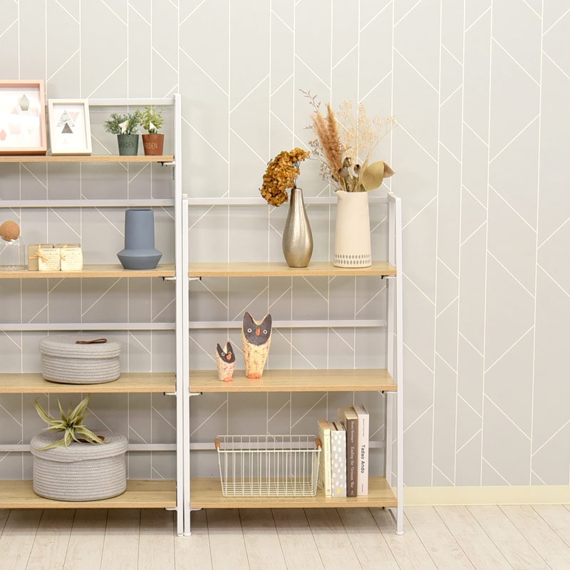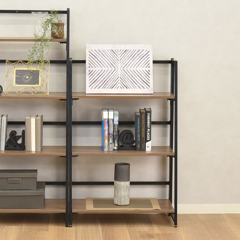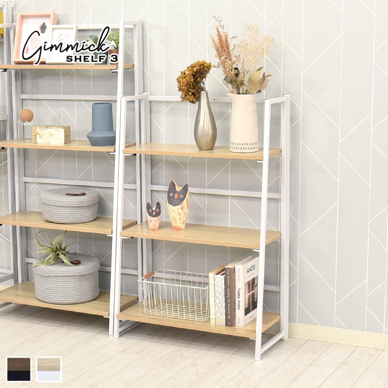 使わないときは折りたたむことでコンパクトに収納が出来る3段シェルフです。