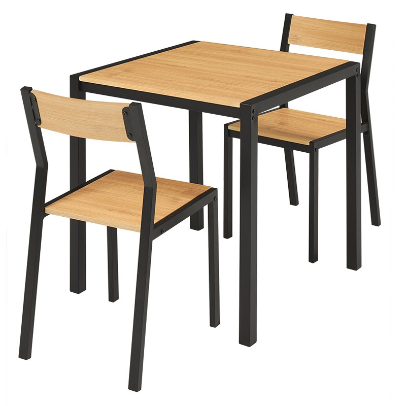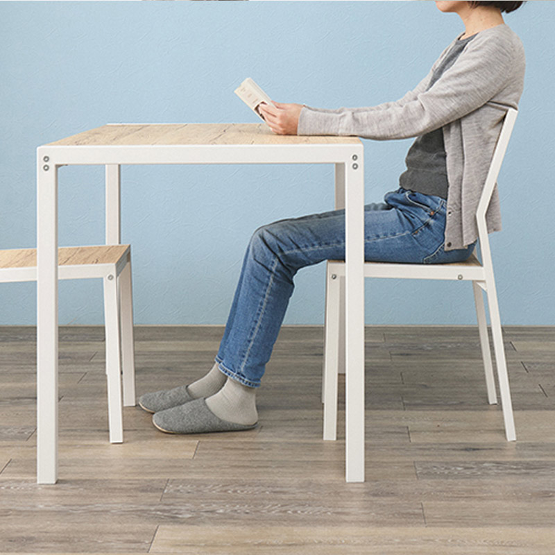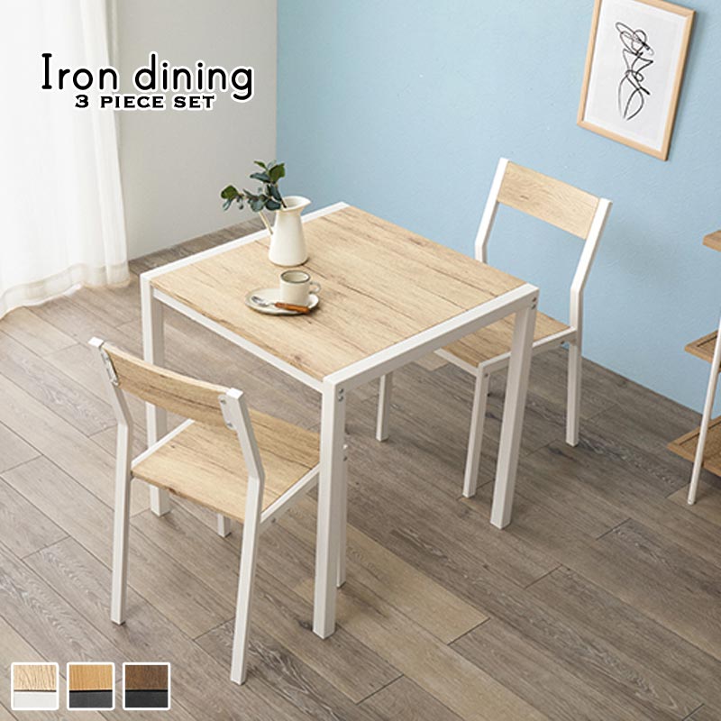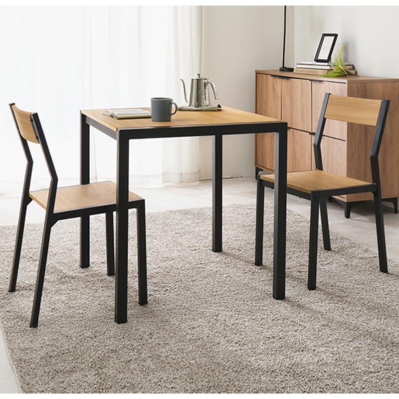 温かな木目調を引き立てるアイアンとの組み合わせがスタイリッシュなダイニング3点セットです。